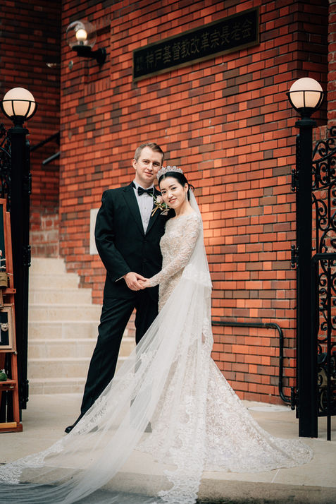 中に入れるシルクをお肌のトーンに合わせる事で、レースが引き立つしなやかな輝きをもったデザインに。ファーストダンスでもドラマチックなベールを付けたいという花嫁さまのリクエストで2つの長さをご用意しました。